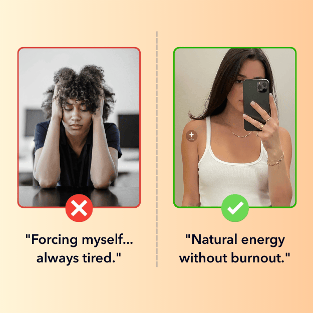 "I was dragging myself through each day, relying on coffee and sugar just to function. But with the patch, my mood lifted, my energy stabilized, and I actually want to do things again. I feel motivated for the first time in years. Like, finally!"