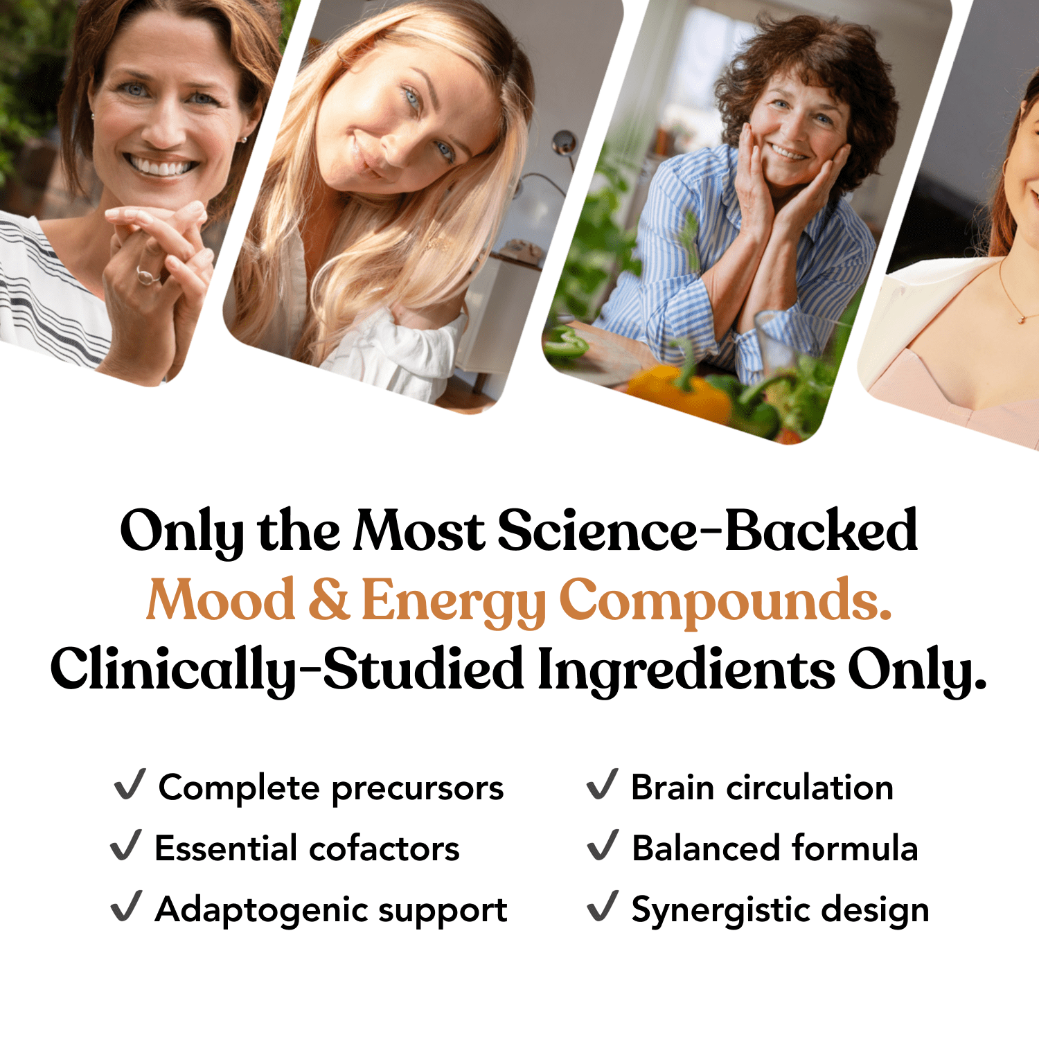 Dopamine support helps you maintain consistent energy levels. No more afternoon crashes. You can stay focused and productive without relying on caffeine or sugar rushes.